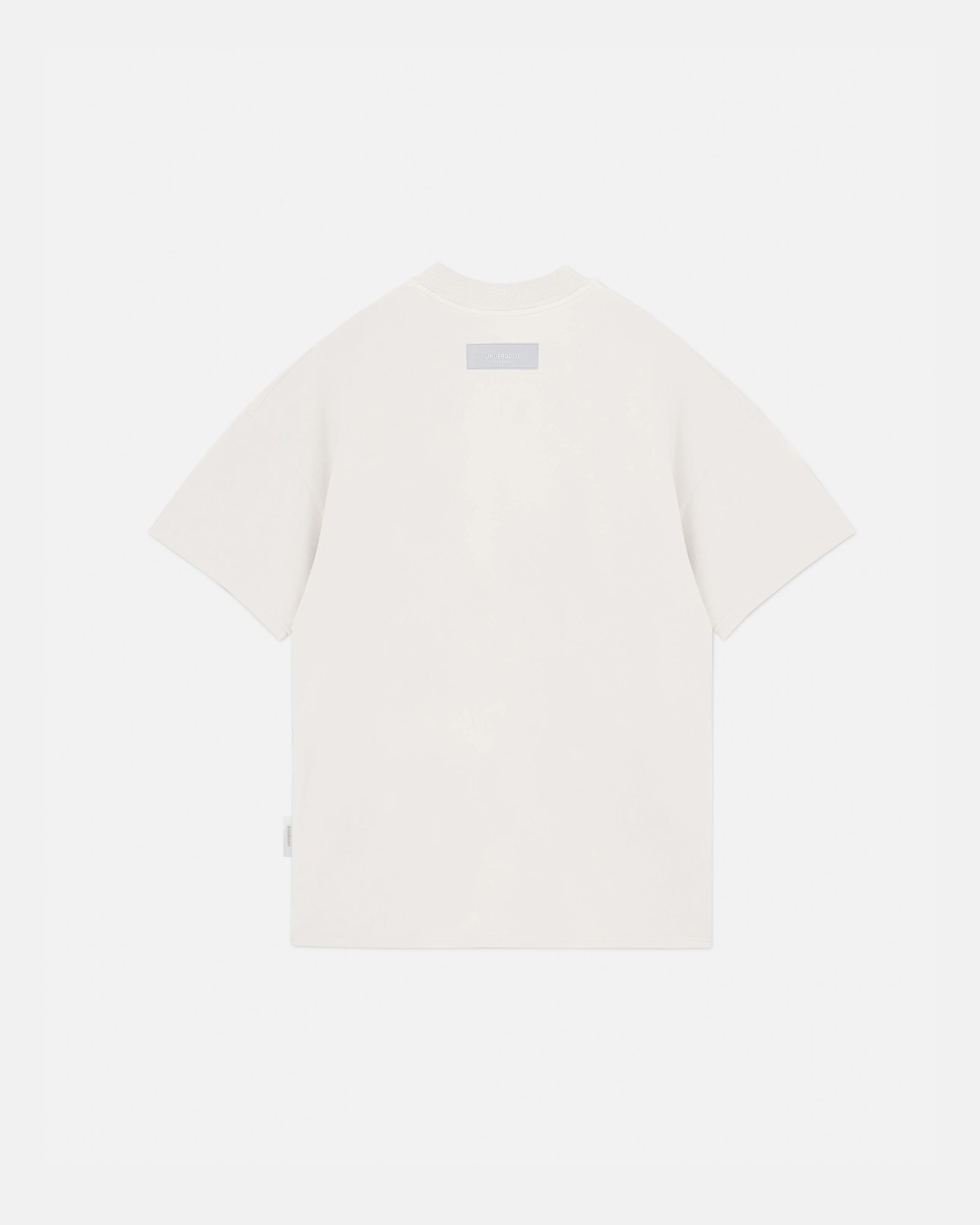 White T-shirt with an Oversized fit, made of 100% heavyweight cotton fabric (230 gr), intervened with white flock print in heart stitch on the front.
