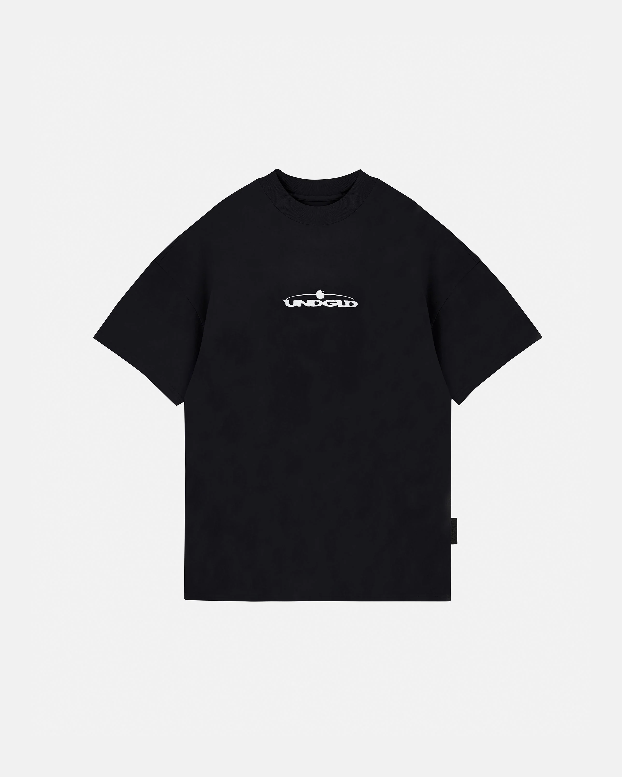 Vintage Black T-shirt with an Oversized fit, made of 100% heavyweight cotton fabric (230 gr), intervened with white flat plastisol print on the front and back. Also, developed with graphic polychrome print combined with white semi high density print on the front and back.