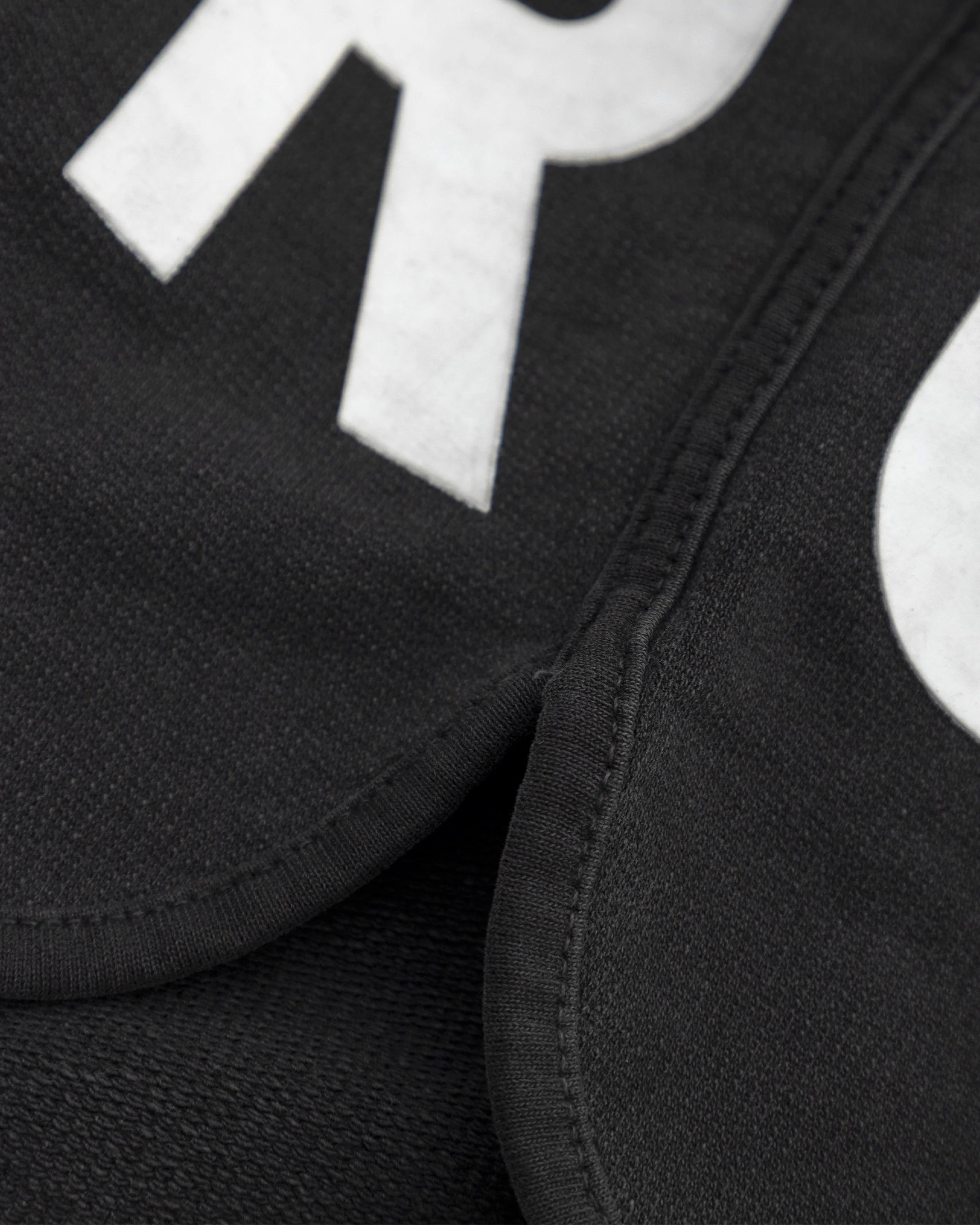 Old Gray Short with a regular-fit, made of 100% heavyweight cotton fabric (380g), intervened with white semi-high-density print on the side.